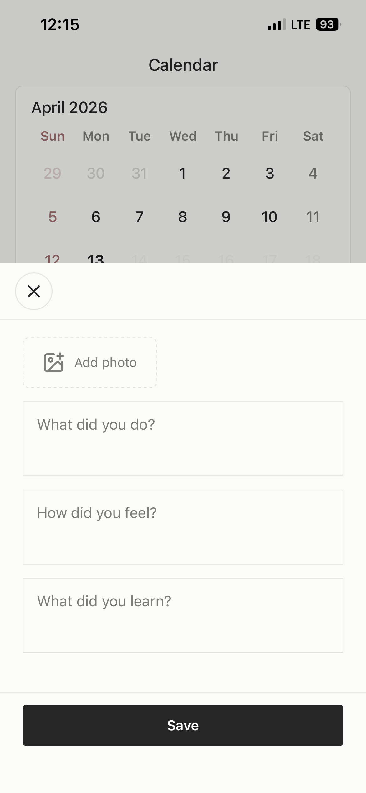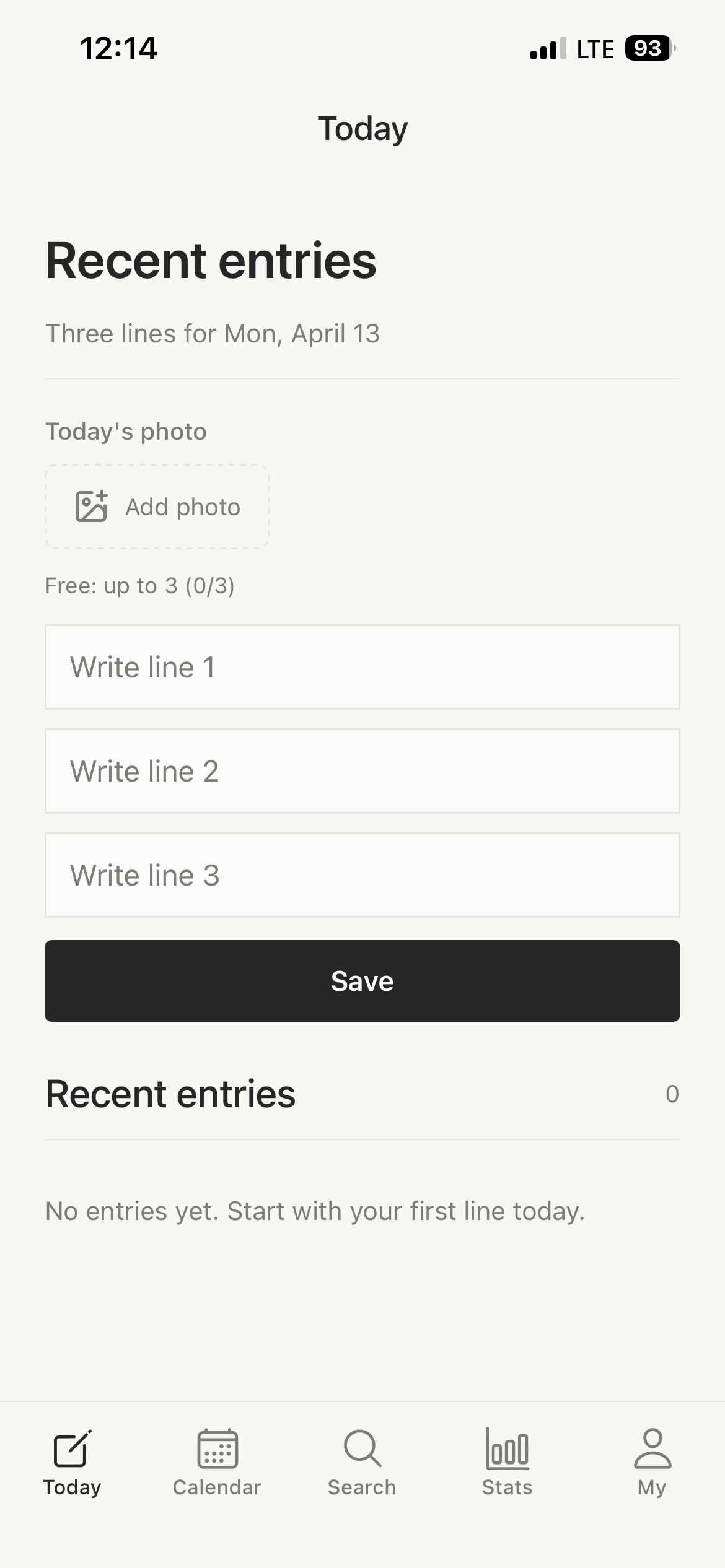 사진 한 장과 세 줄의 문장으로, 많이 쓰지 않아도 하루가 남도록 만든 미니멀 저널 앱입니다.