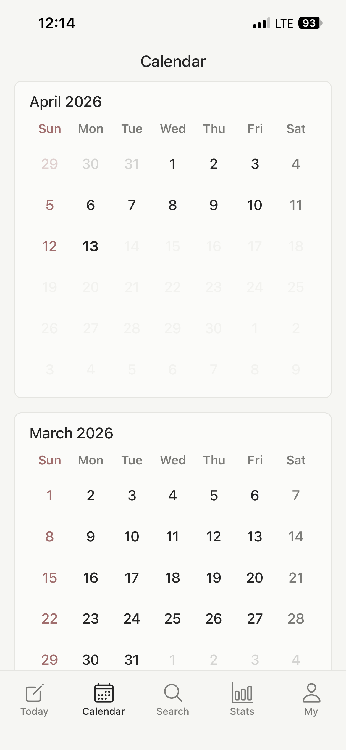 쌓인 기록을 날짜 흐름으로 천천히 돌아봅니다.